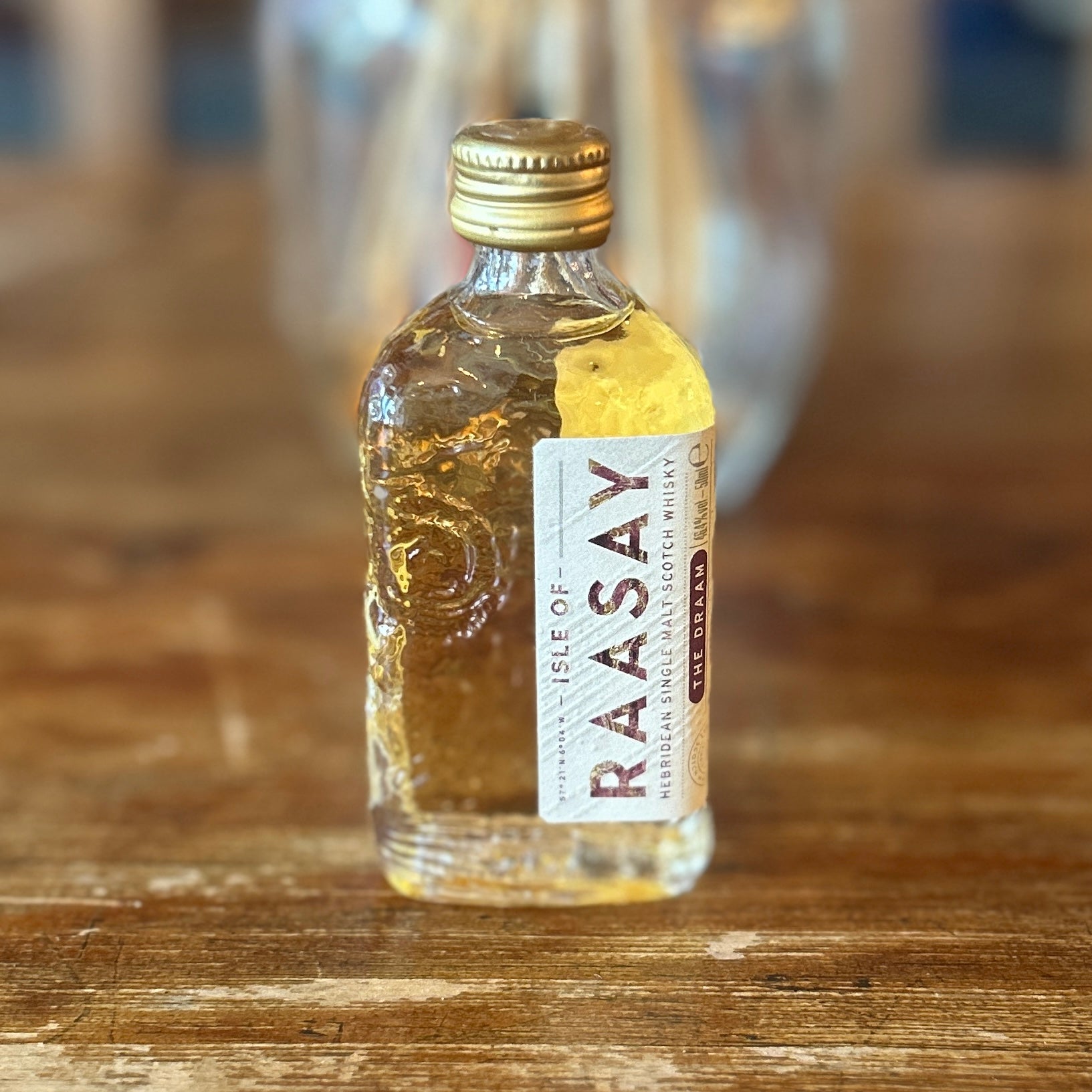 The Isle of Raasay Distillery's flagship whisky, The Draam, is now available in a 5cl miniature bottle, offering a taste of their award-winning single malt. Crafted using the distillery's unique six-cask maturation process, this whisky combines peated and unpeated spirits aged in first-fill rye whiskey, fresh Chinkapin oak, and first-fill Bordeaux red wine casks. This innovative approach imparts a distinctive character to the whisky.